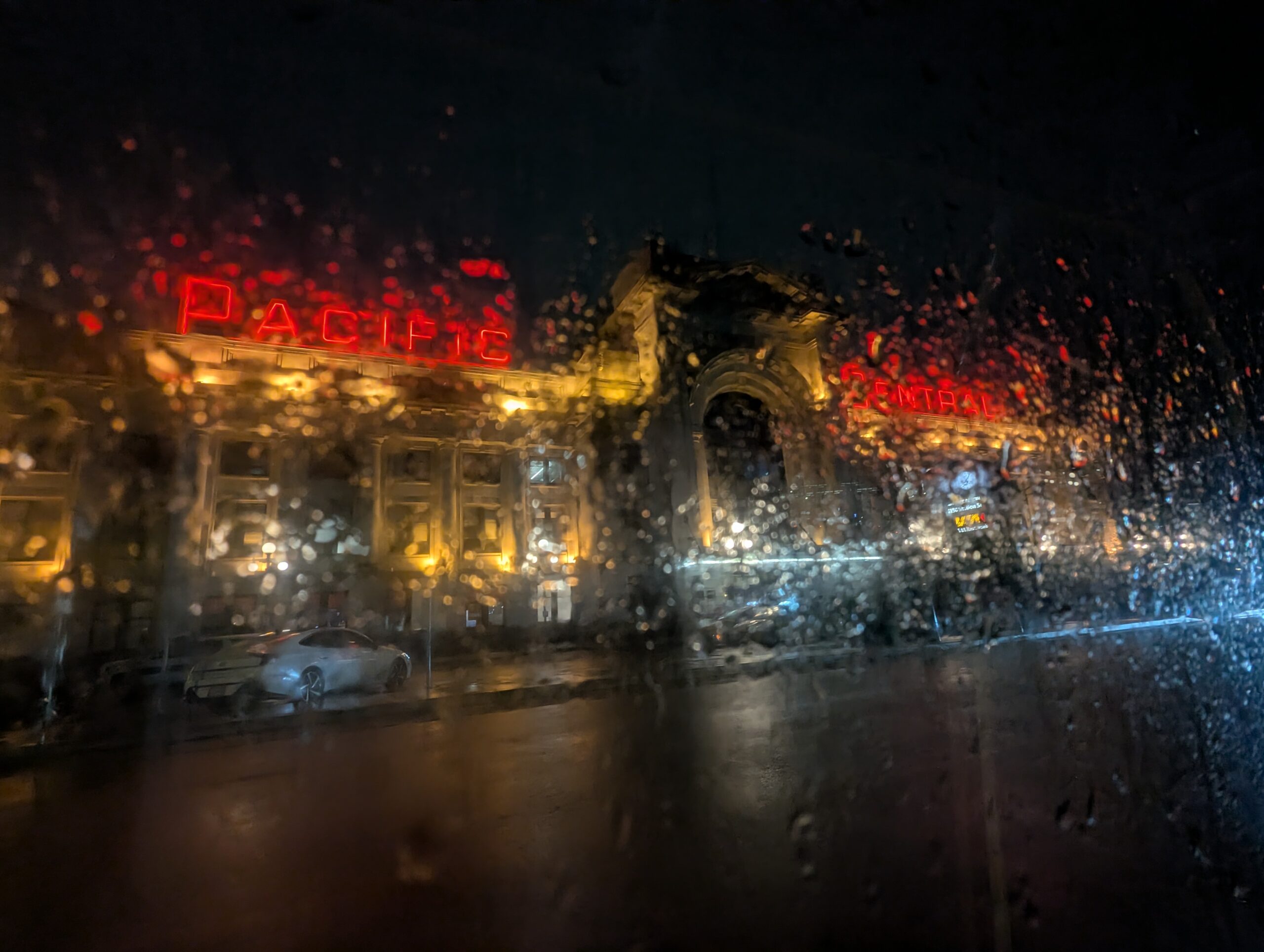 A view of Pacific Central Station through a bus window in Vancouver, British Columbia, on Thursday, March 19, 2026.